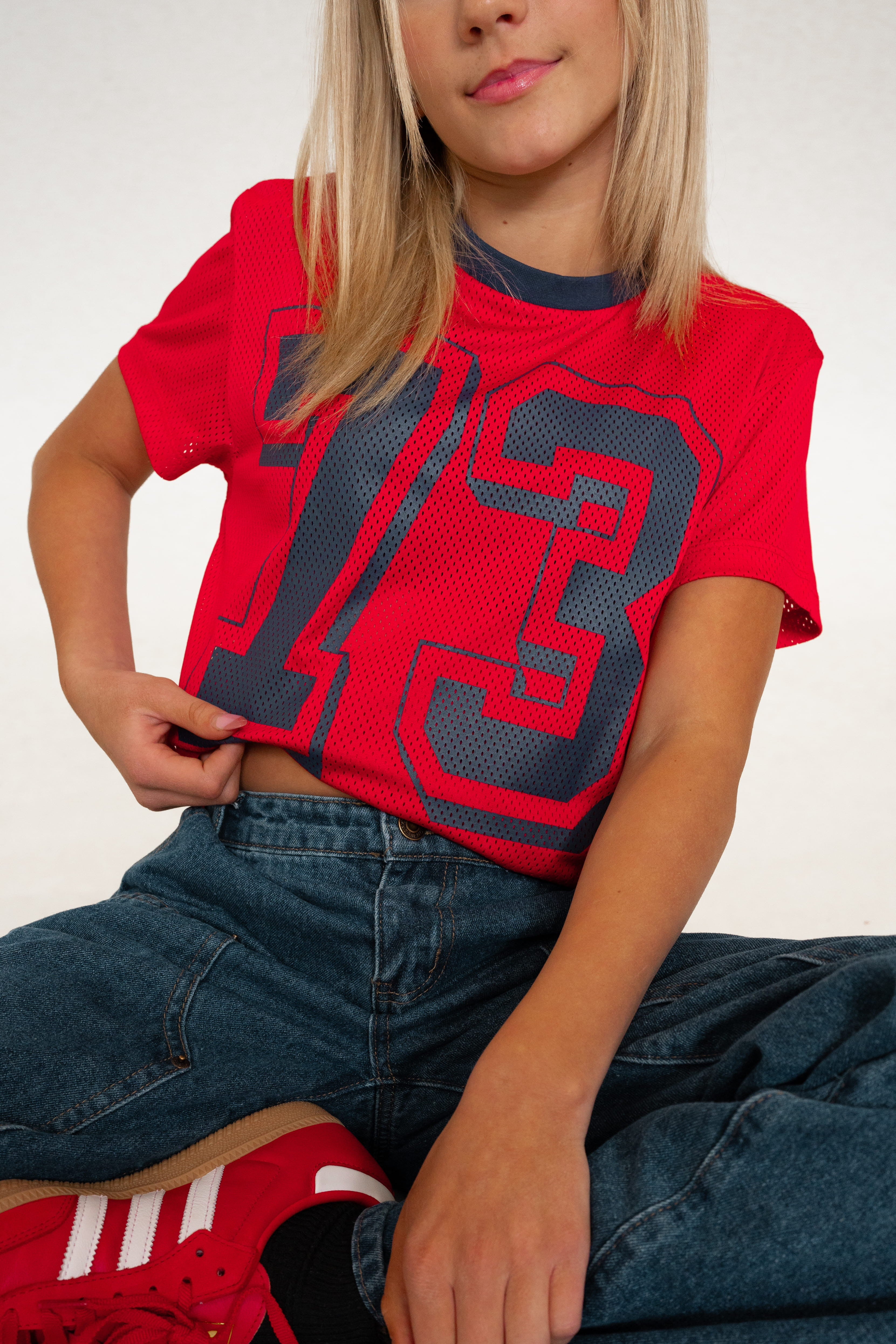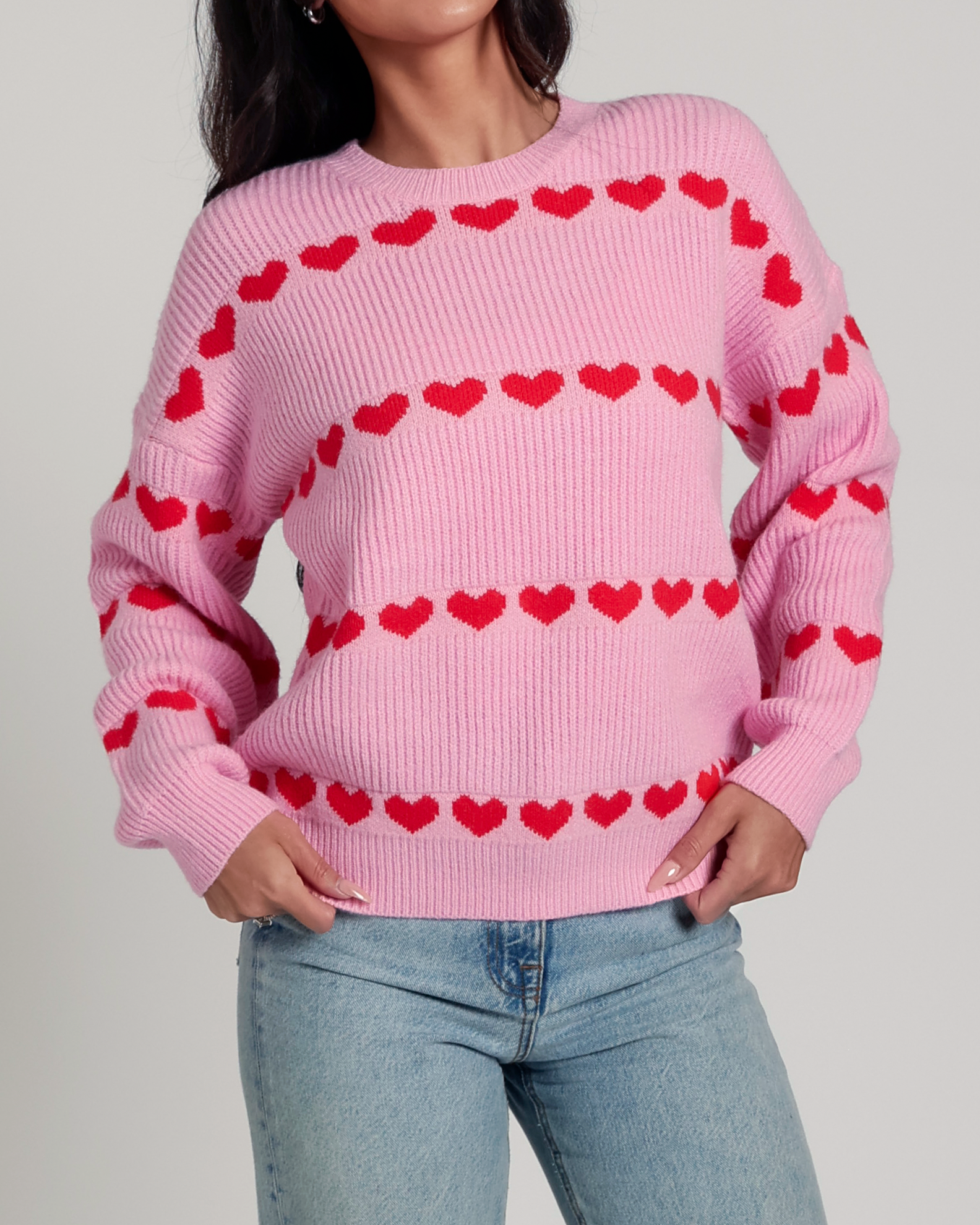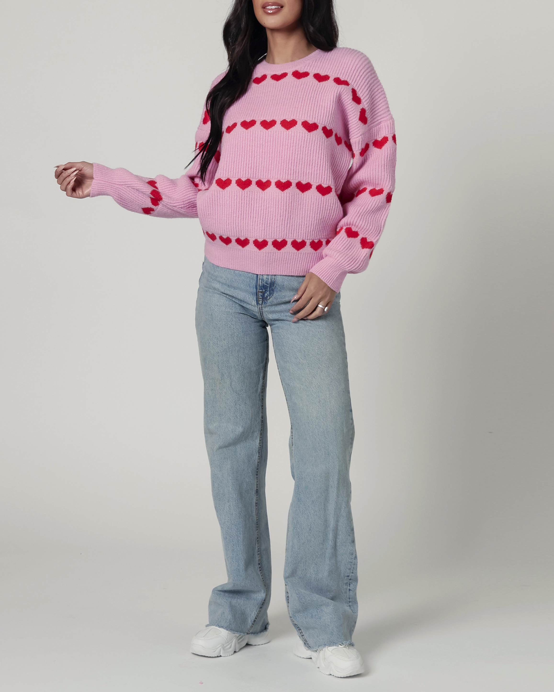 Sarah Heart Ribbed Knit Sweater in Pink/Red