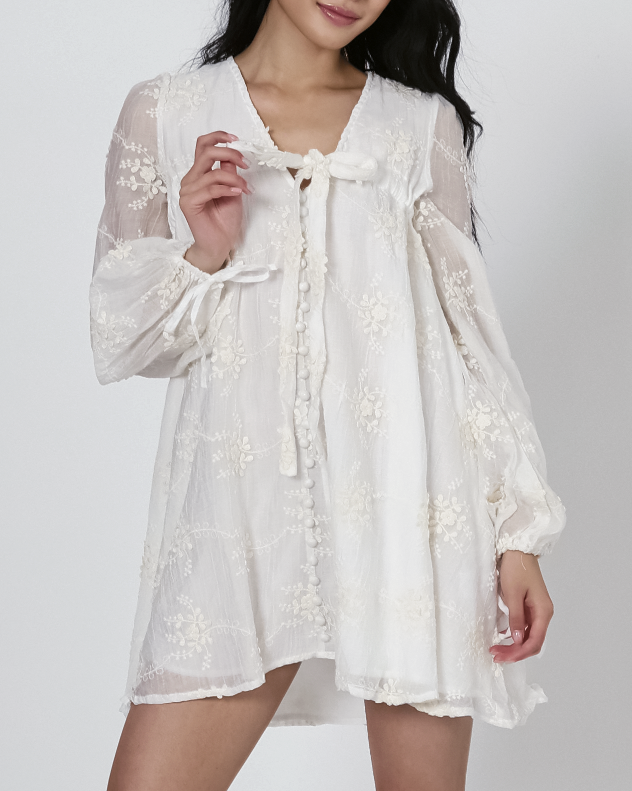 Lyla Embroidered Dress in Ivory
