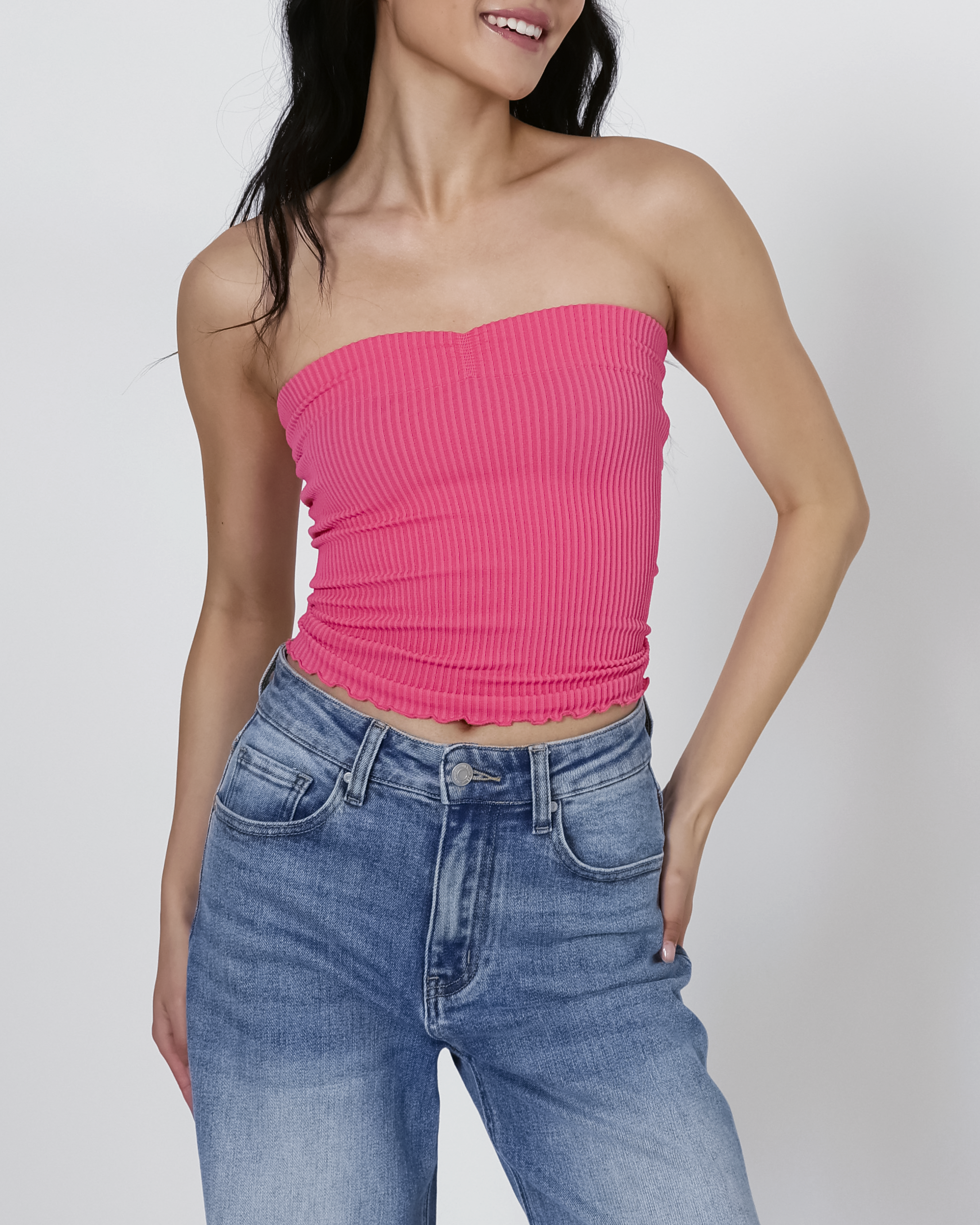 Corinna Ribbed Tube Top in Pink