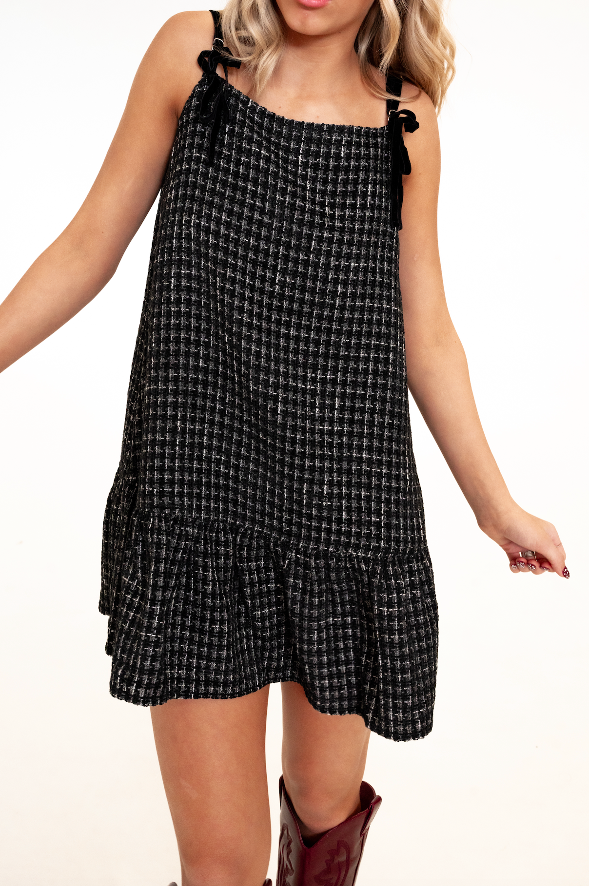 Bridget Tweed Drop Waist Mini Dress in Black